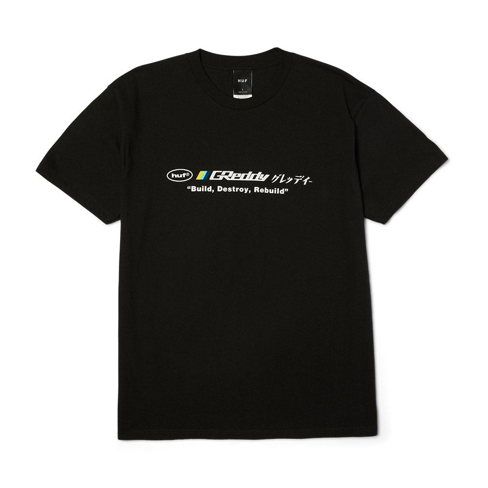 חולצת טישירט עם פרינט של האפ מקולקציית הקפסולה עם מותג המירוצים וחלקי החילוף "גרדי"